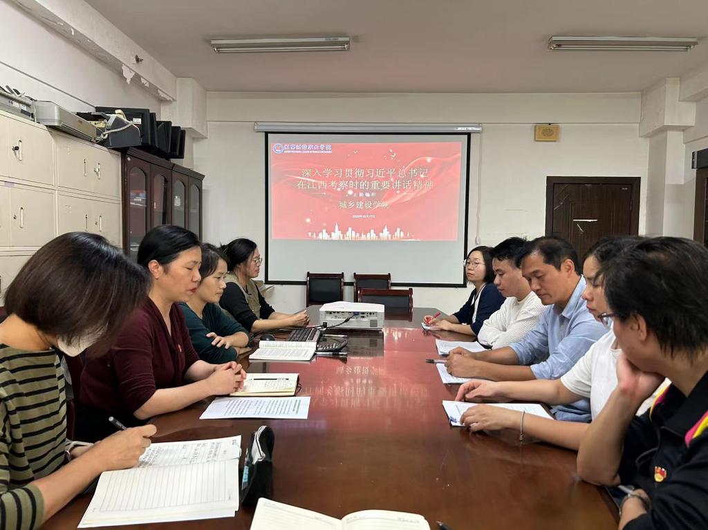 为学习贯彻习近平总书记在江西考察时的重要讲话精神,10月17日,城乡建设学院在综合楼1103召开专题学习会,学院全体教职工参加学习,学院党总支书记胡红霞主持学习。
