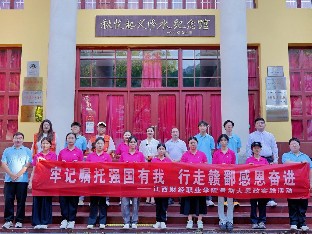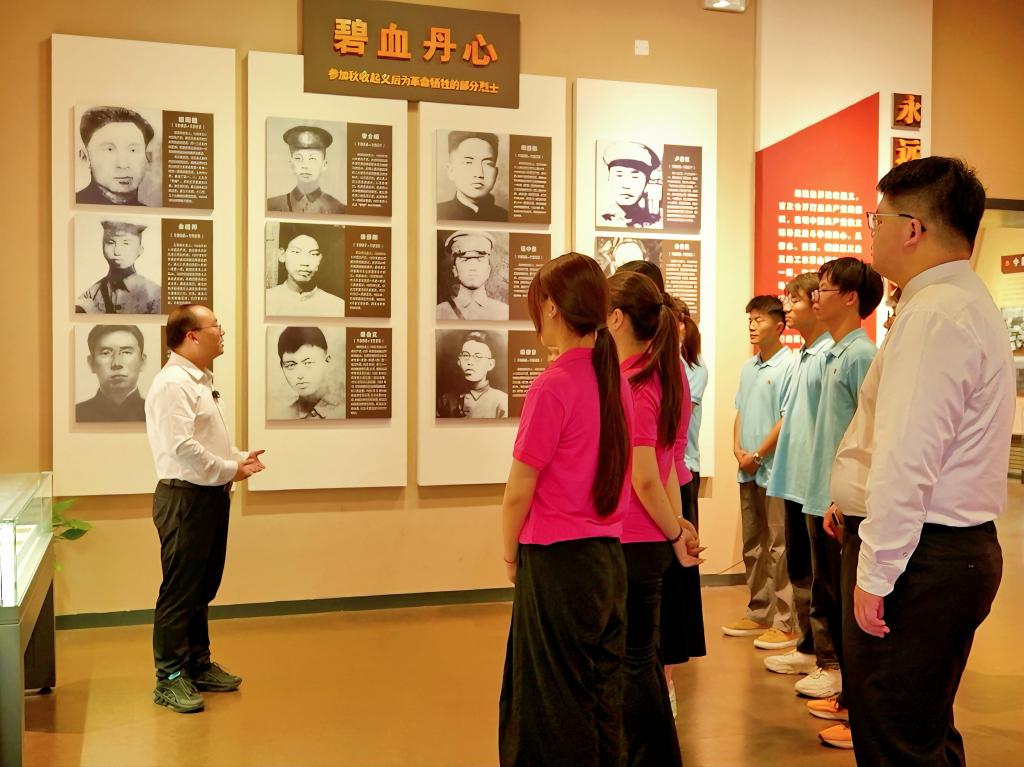 为全面深入贯彻习近平总书记考察江西重要讲话精神,用丰富的红色资源推进思政课建设,进一步推动爱国主义教育,7月7日至8日,beat365正版唯一入口必一思政课教师、城乡建设学院党总支书记胡红霞带队赴九江市修水县秋收起义修水纪念馆开展暑期大思政实践活动,思政课老师张天明、雷丽和文化旅游学院部分学生参加。