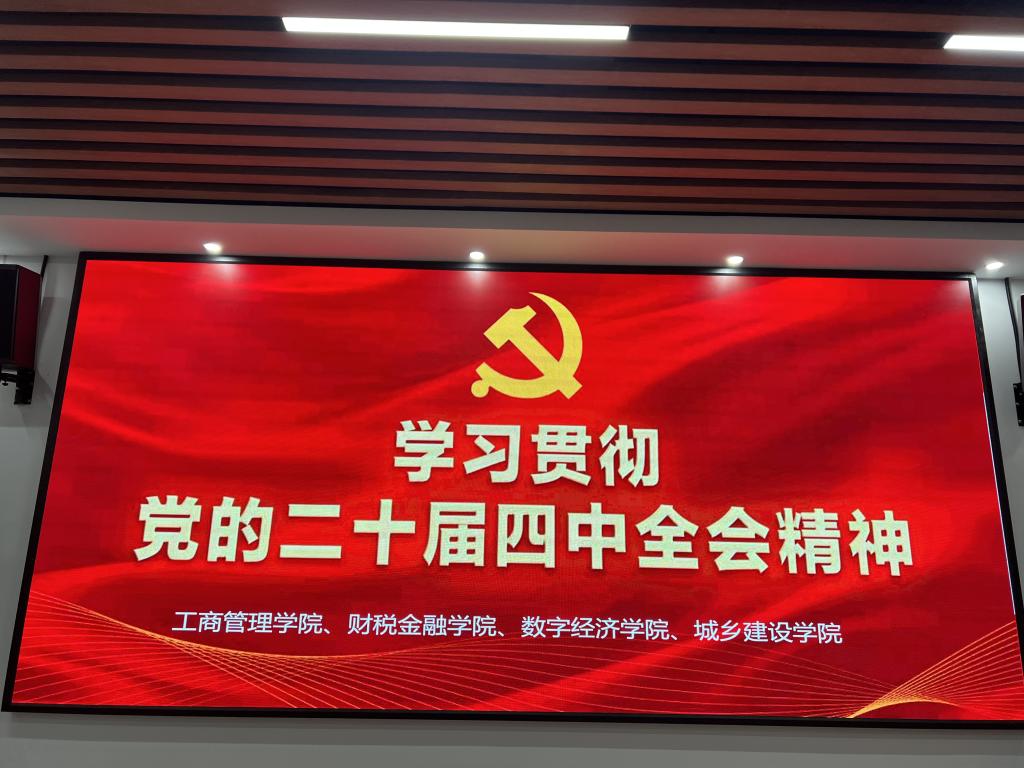 为深入学习贯彻党的二十届四中全会精神,切实统一党员教师思想和行动,11月18日,城乡建设学院党总支、财税金融学院党总支、数字经济学院党总支、工商管理学院党总支联合开展主题党日活动,各学院全体党员和教师参加此次活动。