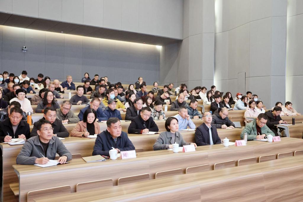 12月4日下午,beat365官网在八里湖校区行政楼2号报告厅举办深入学习贯彻党的二十届四中全会精神宣讲报告会。校党委书记李松志作宣讲报告,会议由党委副书记、校长彭慧主持,校领导班子成员、全体中层干部和党员师生代表共计200余人参加学习。